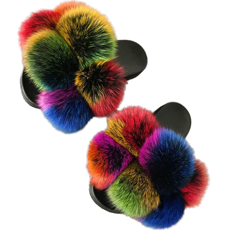 リアルフォックスファーレディーススライドサンダル滑り止めPVCインソール夏スリッパドロップ出荷女性の毛皮の靴